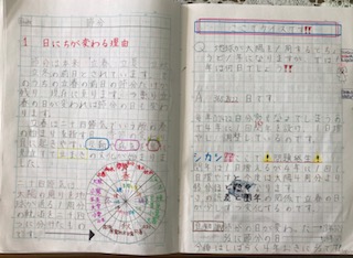 低学年も進んでやっています。「ママ問題」もあります。友達と見合って素敵なノートにシールをプレゼントしあっています。