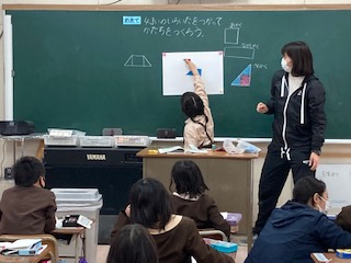 三角形の色板を使って形を作りました。一枚動かしてで、違う形も作りました。