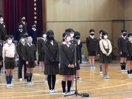 これで全学年に発表したことになります。今日は最終日ということもあり、いつも以上に気合いの入った演奏になりました。迫力ある歌声と合奏に対して1年生から「かっこよかった」「すごかった」とたくさんメッセージをもらって、満足そうな6年生でした。