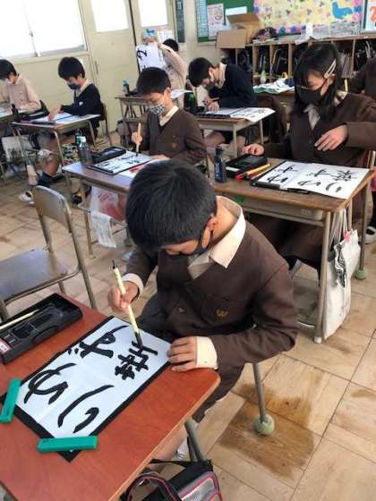 小学校生活最後の毛筆で「ゆずり葉」と書きました。ゆずり葉とは、「新しい葉の芽生えのために古い葉が交代するという性質になぞらえて、後の世の代々まで福を譲る」という意味をもつそうです。旅立ちにふさわしい言葉ですね。