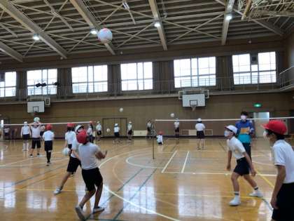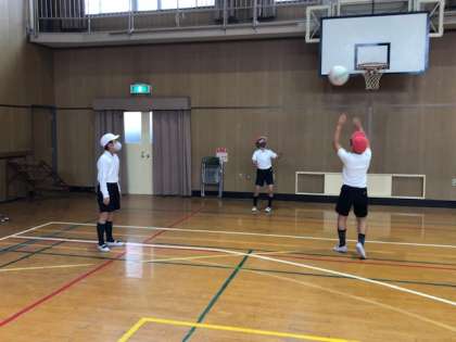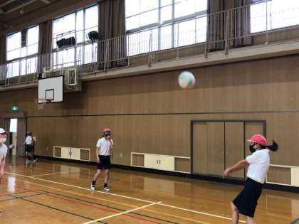 ソフトバレーボールのまとめを行いました。アンダーハンドパス、オーバーハンドパスのテストの様子です。