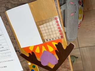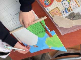自分でデザインして、白板(ホワイトボード)を作りました。友達の作品を見て、良いところ、工夫しているところなどを見つけ会いまし