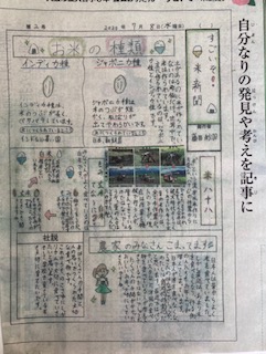 朝日小学生新聞の「学校新聞コンクール」で、5年生のFさんの「すごいぞ!米新聞」が、佳作に選ばれました。10月号で一度表彰されましたが、今度は、一年を通しての受賞です。おめでとう!