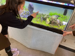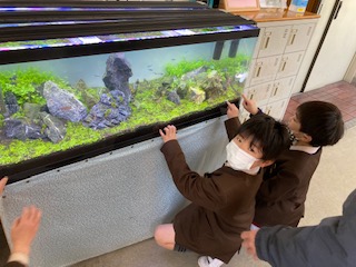 新しい魚が入りました。グラスキャットと赤白まだら模様のレッドビーシュリンプというエビです。見つけることができるかな?