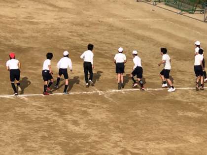 1組と2組でシャトルランをしています。この一年で、体力も随分伸びましたね。