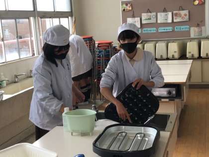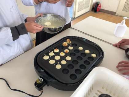 卒業前の団らんとして、ホットプレートでベビーカステラを作りました。今年度はコロナの影響で、調理実習がこれまでできませんでしたが、イエローになったことで思い出づくりができました。