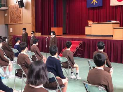 小学校の卒業式は一生に一度の晴れ舞台です。よい姿勢で座り続けるのは、なかなかしんどいことですが、感動の渦で会場を包み込むことができるよう頑張ってほしいです。