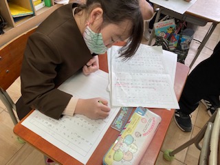 作文の書き直しをしたり、友達の作文を読んで感想を書いたりしました。