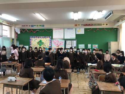 行っていたのでそのお礼です。代表の子どもたちから気持ちを伝えてもらい、嬉しそうな6年でした。