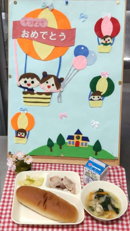 今日は、鶏肉のガーリック焼き、スープ、サワーソテー、黒糖パン、牛乳でした。明日卒業を迎える6年生は最後の給食でした。今食べているものが未来の体をつくります。卒業してもしっかり食べて健やかな毎日を過ごせることを願っています。