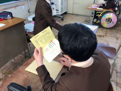 保健室のH先生が1年から卒業までの身長と体重をカラーのグラフと表で一人一人カードにしてくださいました。あゆみと一緒に渡しています。みんな本当に大きくなりましたね。