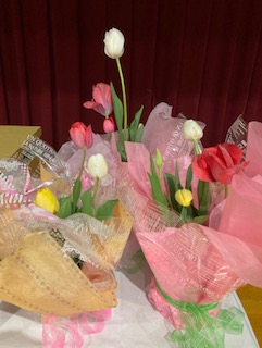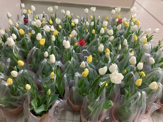 大宮地域から、入学お祝いのチューリップをいただきました。明日の入学式後、1年生の保護者の方に持ち帰っていただきます。