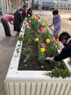 教室前花壇のチューリップも祝ってくれているかのようです!