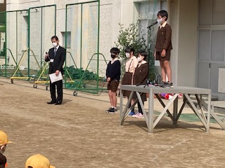6年生の代表児童は、最高学年として、今までの6年生が築いてくれたことをもとに、さらに良い学校にしたい、学習面では、テストの見直しをきちんとするなど小さいことも手を抜かずがんばりたいということなどの決意を堂々と述べました。