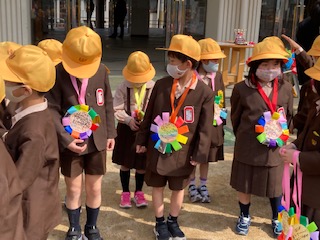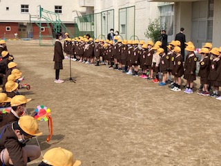 6年生の代表児童から歓迎の言葉を、2年生からは、お祝いメダルをもらいました。