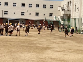 久しぶりの学校。休み時間は運動場でたくさんの子供たちが遊んでいました。