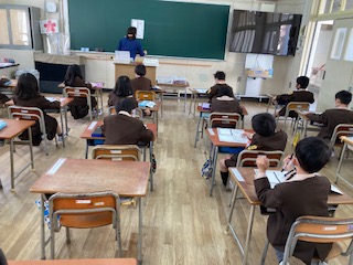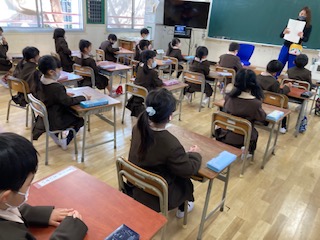 全ての教科書を確かめ、指アイロンをかけた後、先生の後について音読しました。