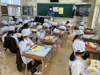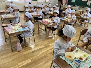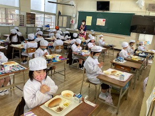 4つの方向を向いて、黙って食べています。早く、おしゃべりしながら食べられる日が来るといいですね。