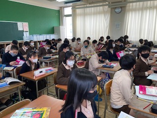 憲法について学習しています。憲法の三つの原則についてや、基本的人権について学習しました。