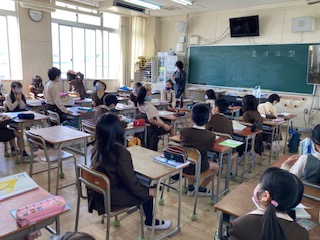 教科書の初めに掲載されている詩を暗誦しています。休業中にも、家で読んで覚えたそうです。