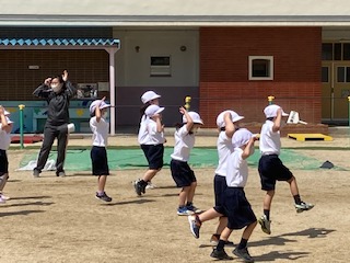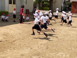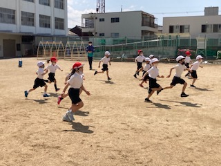 並んだり、「前へ、ならえ」の練習をしました。その後、「よーい、どん。」
