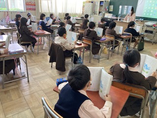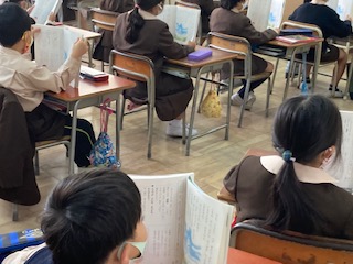 先生の範読を聞いたり、自分たちも音読をしたりしました。明日は、感想を書きます。起立、礼、着席の仕方もさすが2年生です!