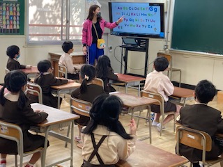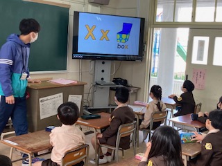 1年生も今日から英語タイムを開始しました。初めは意味が分からなくても何度も聴いていると分かるようになっていきます。アルファベットや、英語のジャンケンゲームなどをして親しみました。