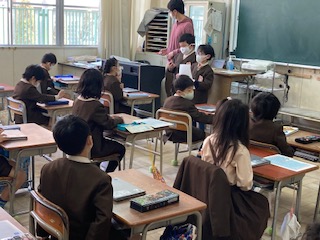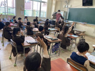 順番に、スピーチをしています。聞いた子ども達は、内容について質問をしています。互いに友達に関心を持ち合う良いきっかけとなります。