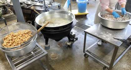 学校のからあげは丁寧に下味と衣をつけて給食室で揚げたてを用意しています。どのクラスも食缶空っぽで返ってきましたよ。