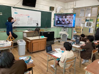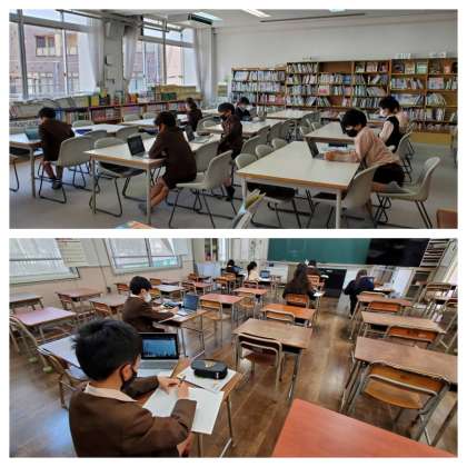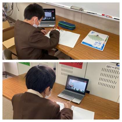 オンラインの授業を想定して、教室、学習室、図書室、多目的室の4教室に分かれて、学習をしました。困っても、自分でいろいろ操作をして学んでいき、全員が答えることができました。一人でも大丈夫ですね。
