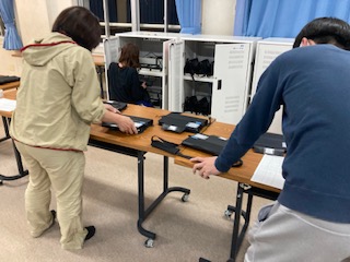 1年生の先生達が、夜遅く、子ども達が使うタブレットの状態確認をしました。まだまだ難しいですが、オンライン授業に向けて備えていこうと考えています。