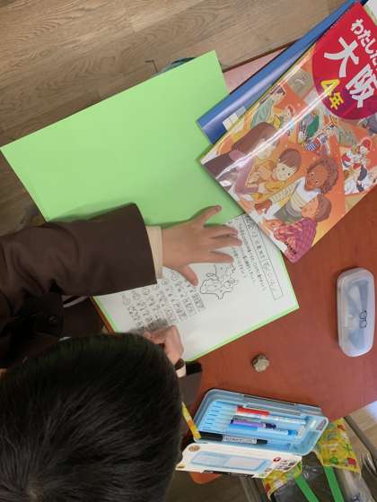 今日は社会科ファイルを作りました!これから都道府県のプリントやテストを綴っていく予定です。