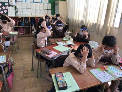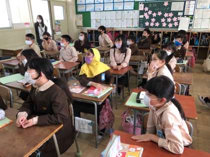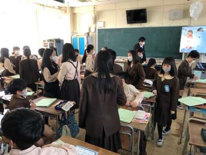 5年になり、C-NetのK先生との英語の学習が始まりました。自己紹介やポインティングゲームをして、とても楽しそうに活動していました。5年からは、あゆみでも英語が数値で評価されます。楽しく活動しながら、必要な知識や話したりきいたりする力を身につけていきたいと思います。