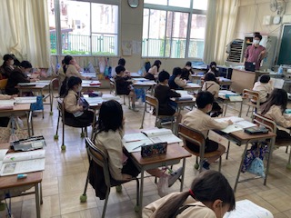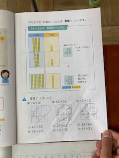 筆算の仕方を学習し、練習問題を解いていきました。ノートに問題を書く時、位を間違えないで、書くことがポイントです。