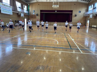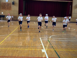 体育館で、20mシャトルランの記録をとりました。ペース配分に気をつけながら、記録に挑戦です!