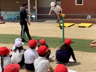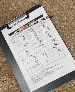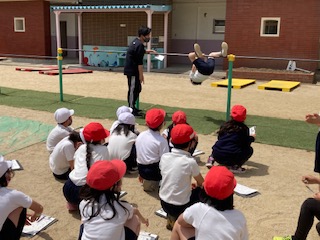 「鉄棒チャレンジカード」にある技を確認しながら、挑戦しています。