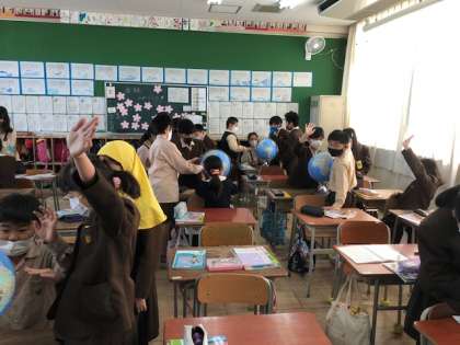休み時間になってからも、楽しそうに地球儀を見ている子どももいました。