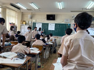 資料として提示されているグラフを見て気づいたこと、疑問に思ったことなどを交流しました。グラフの結果だけではなく、いつ、誰にとったアンケートなのかなど、鋭い質問も出てきました。