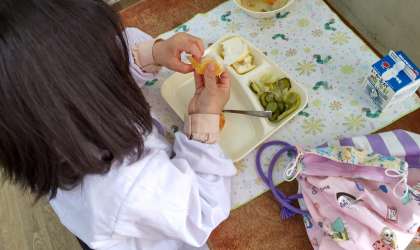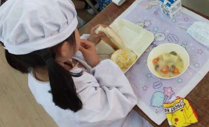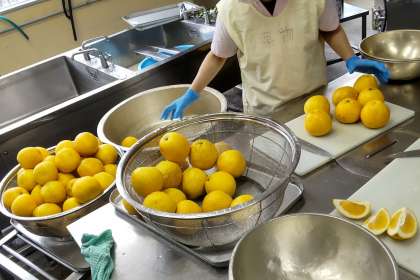 今日の給食のかわちばんかん、初めて食べるという子も多かったのですが、一年生もかわむき名人にチャレンジしていました。給食室でも食べやすいように、たくさんの河内ばんかんをきれいに洗って4分の1に切ってくれています。