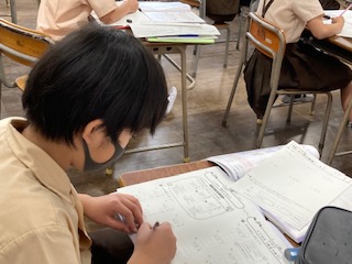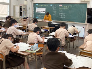 3桁の数÷1桁の数の計算の仕方を考えるました。筆算でやってみると、2桁の数の時と同じように左から計算をしていけば良いことが分かりました。家でオンライン学習をしている子達も一緒に問題を解いて考えました。