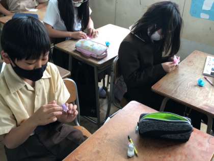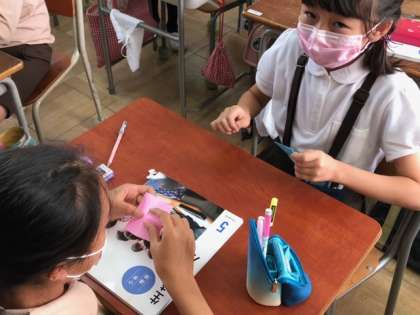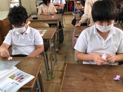みんなで6月の掲示を作りました。折り紙に久々にふれた子どももいます。折り紙は、指先の巧緻性を鍛えるとも言われています。分からないところは協力し合い、楽しいひとときとなりました。