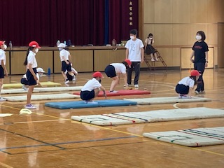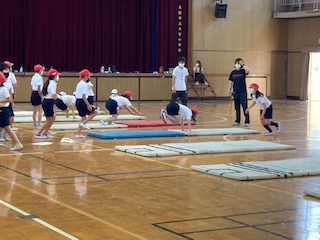 またと運動に挑戦です。基本の動きは、音楽に合わせて行います。