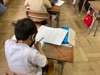 家でしているお手伝いについて、順序を表す言葉を使って書きました。