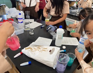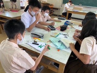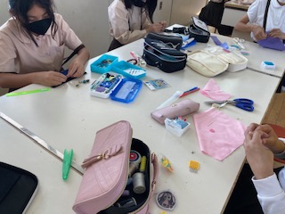 スライムや小物を作ったり、お気に入りのキャラクターの絵を描いたりと、グループで話をしながら作りました。