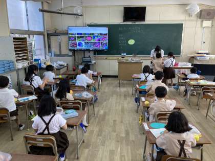 様々な色の画用紙を活用して、あじさいを作りました。のりを上手に使い、楽しそうに取り組んでいます。