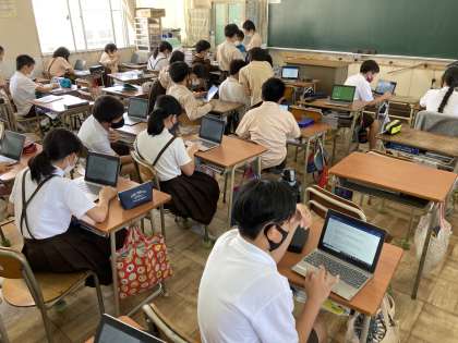 1人1台端末を活用して、フェアトレードについての自分の意見を文章にまとめて