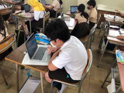給食に使われている野菜や肉の産地について一人一台パソコンで調べました。
