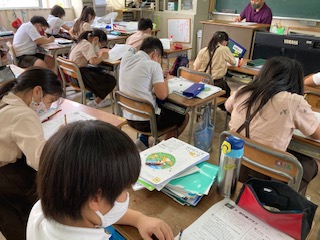 折れ線グラフや調べた事を表に整理する学習のテストをしました。