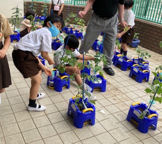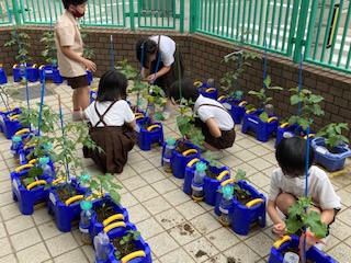 育てている自分の野菜の世話をしました。裏が黄色くなっている葉は、とりました。