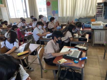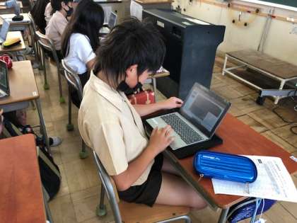 4年のときからICTにふれる機会を多くもってきました。調べたことをまとめ、学校で交流しようと考えています。